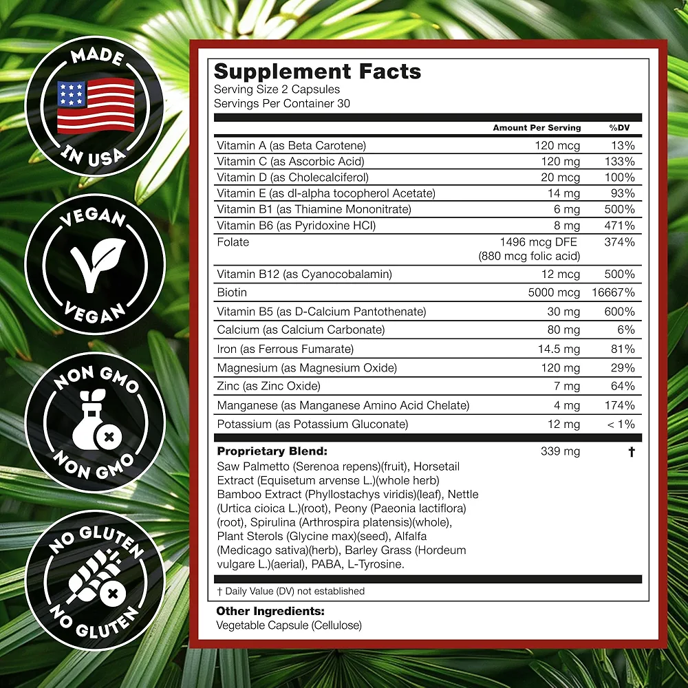 حاوی بیوتین 5000 mcg برای تقویت مو، پوست و ناخن