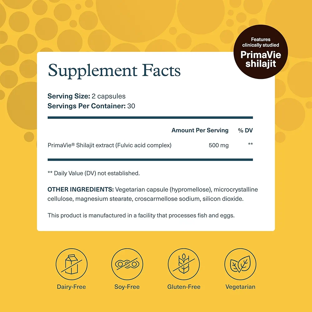 کپسول Shilajit یوتئوری (Youtheory Shilajit) یک مکمل طبیعی و قدرتمند برای افزایش انرژی، کاهش خستگی، بهبود عملکرد جسمی و ذهنی است. این محصول حاوی شیلاجیت خالص با کیفیت بالا از نوع PrimaVie® بوده که از نظر بالینی مورد بررسی قرار گرفته است.