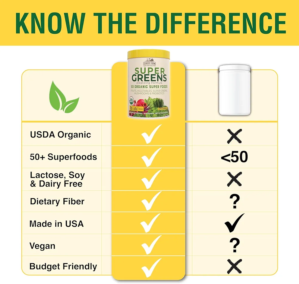 آنتیاکسیدانهای قوی و تقویت سیستم ایمنی. سوپر گرینهای کانتری فارمز حاوی آنتیاکسیدانهای قوی مانند پلیفنولها هستند که در بسیاری از میوهها مانند انواع توتها یافت میشوند. سوپر گرینها همچنین به لطف ترکیب قارچ ما به تقویت سلامت سیستم ایمنی شما کمک میکنند. سوپر گرینهای کانتری فارمز ترکیبی قوی از قارچهای ارگانیک متشکل از 10 قارچ از جمله مایتاکه، هیماتسوتاکه، کوردیسپس، دم بوقلمون و بسیاری دیگر را ارائه میدهند.