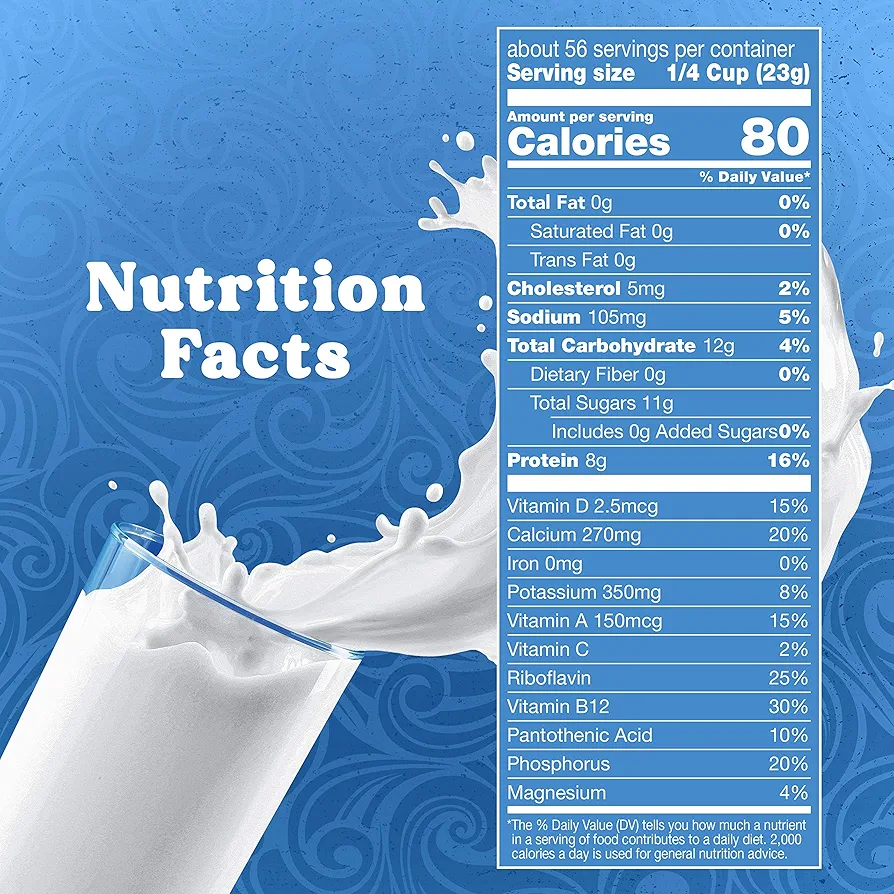 حاوی چربی نیست، 80 کالری و 8 گرم پروتئین در هر وعده دارد. نه تنها میتوان از آن برای تهیه شیر مایع استفاده کرد، بلکه برای قهوه، پخت و پز و موارد دیگر عالی است.