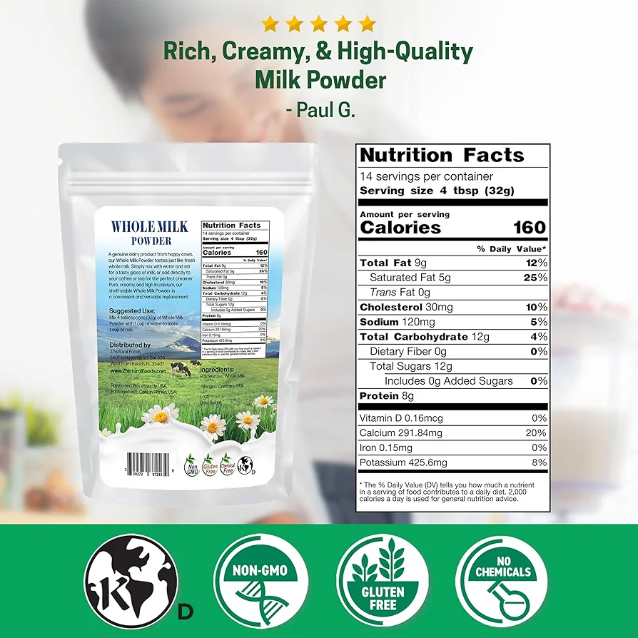 شیر کامل غنی Z Natural Foods پودری که به شما امکان میدهد شیر کامل خالص و خامهای را به صورت پودر میل کنید . این پودر از گاوهای ویسکانسین تهیه شده است و طعم واقعی لبنیات اصیل را در هر پیمانه آن بچشید.
